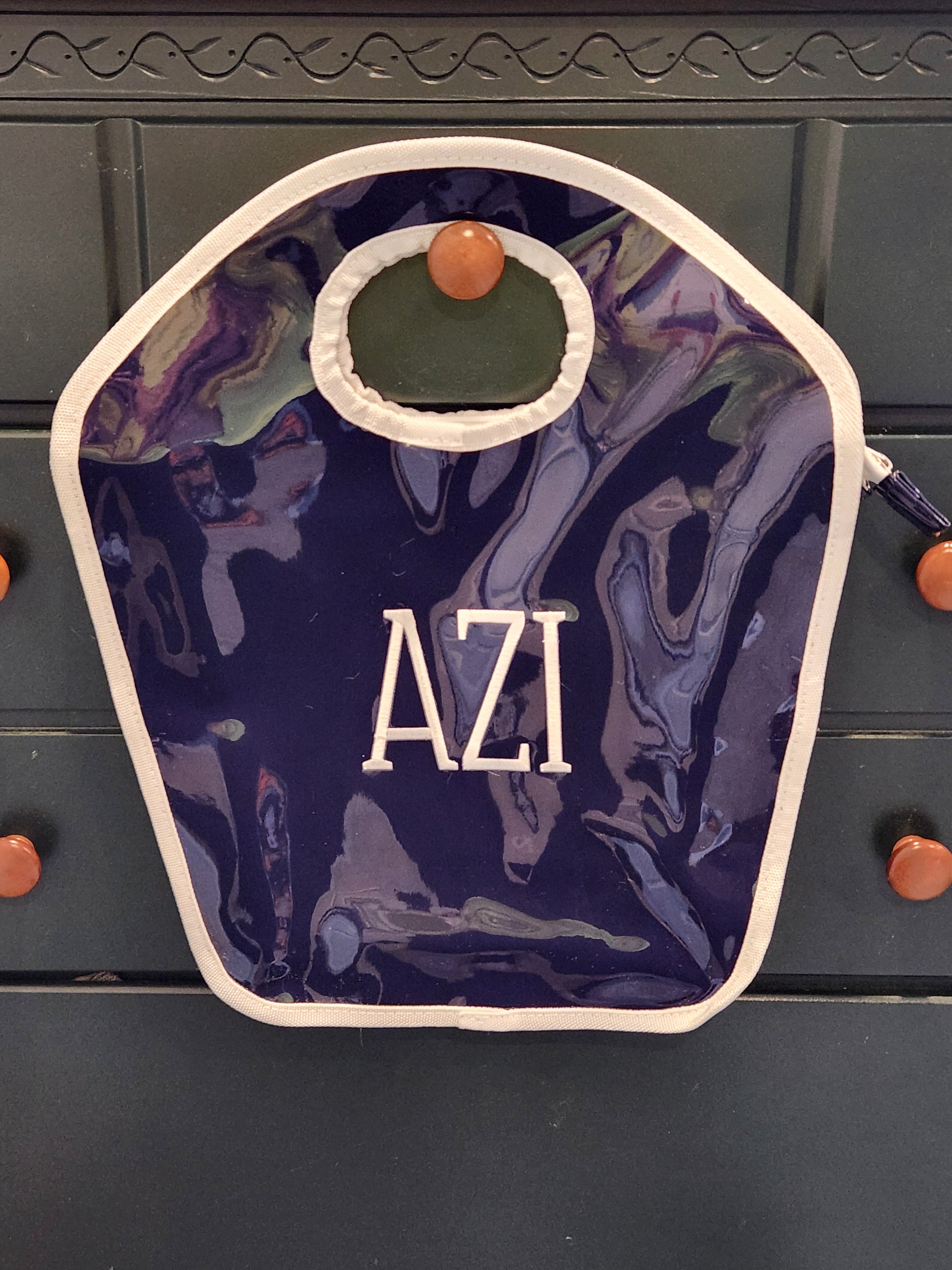 Navy and White Patent Keyhole Bag