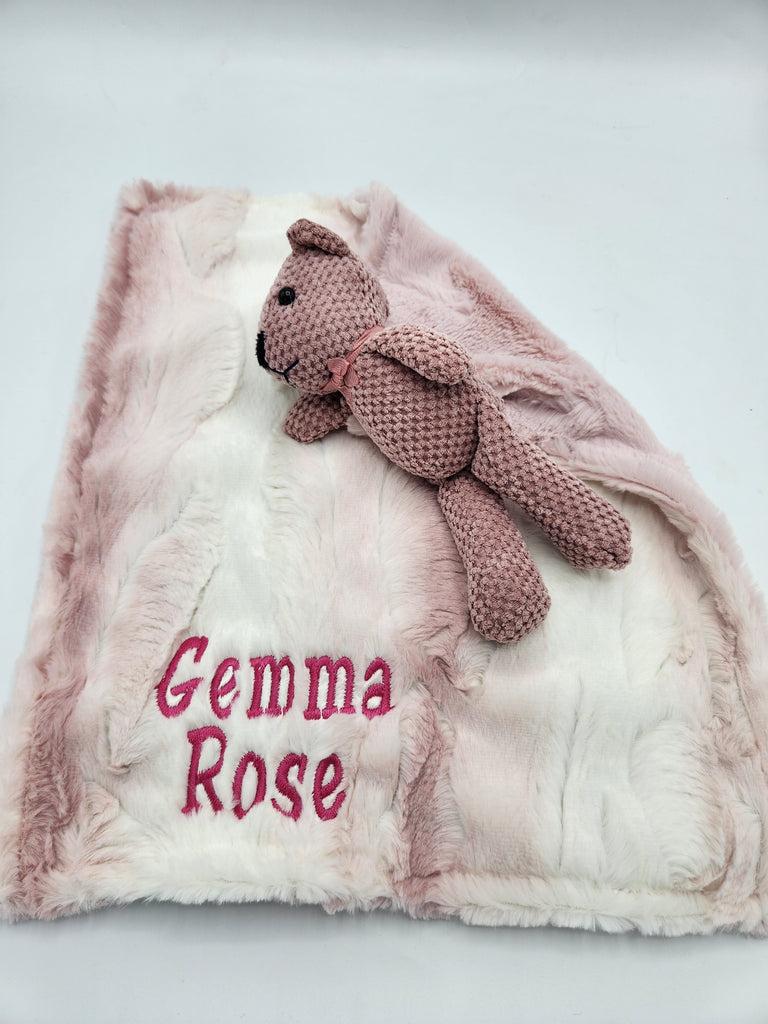Ombre Blush Rosewood Lovie With Cream Teddy Bear