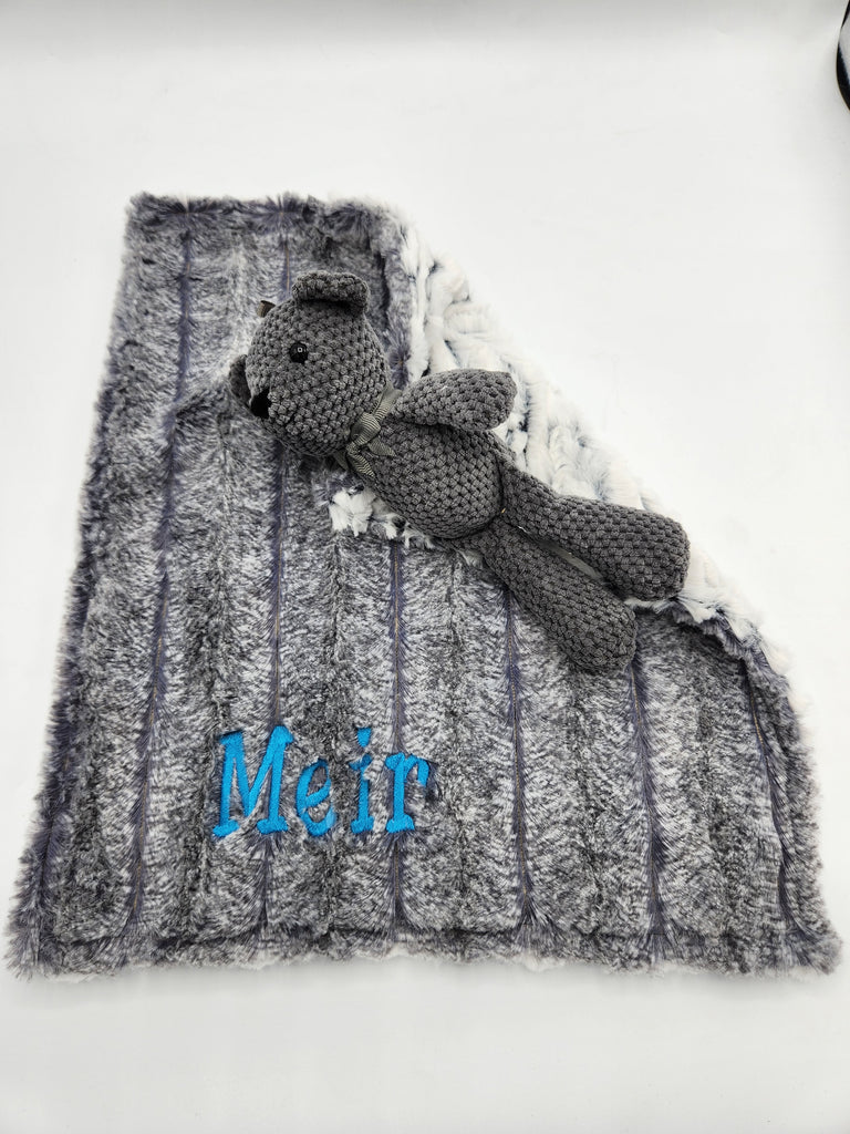 Marble Gray and Charcoal Lovie with Teddy Bear