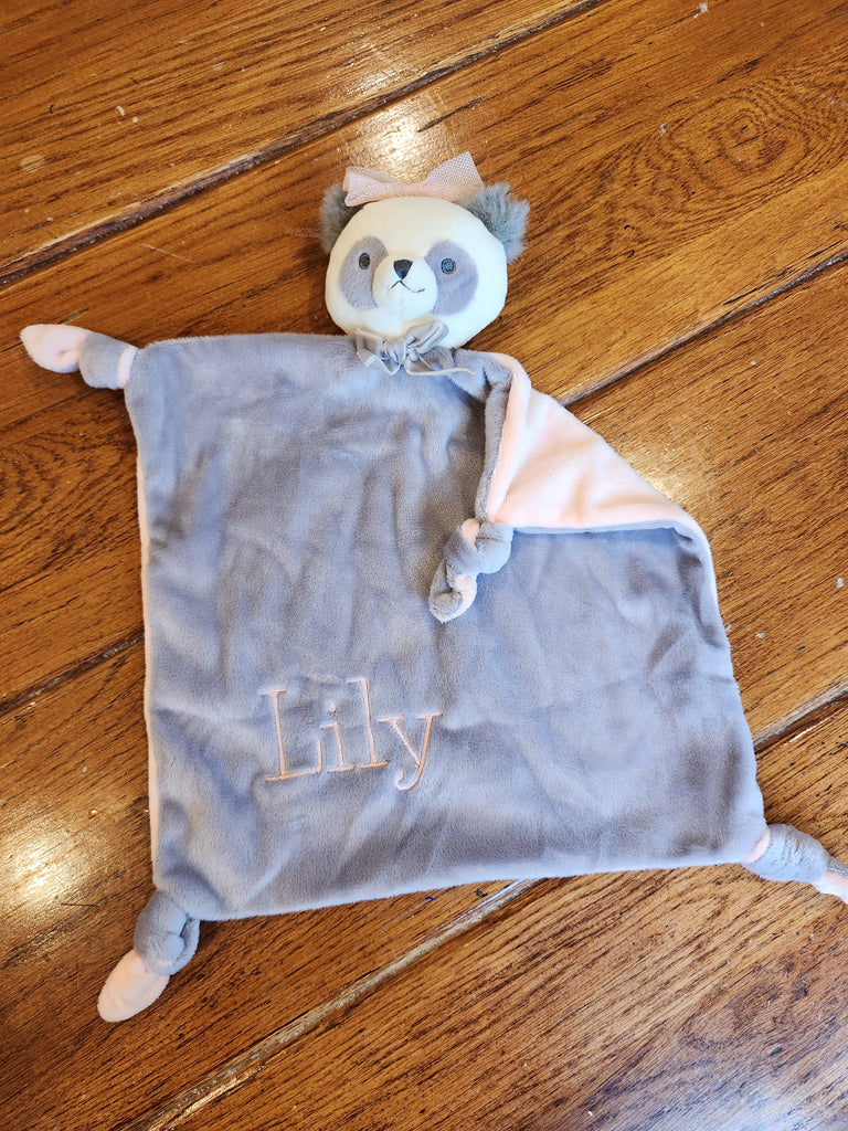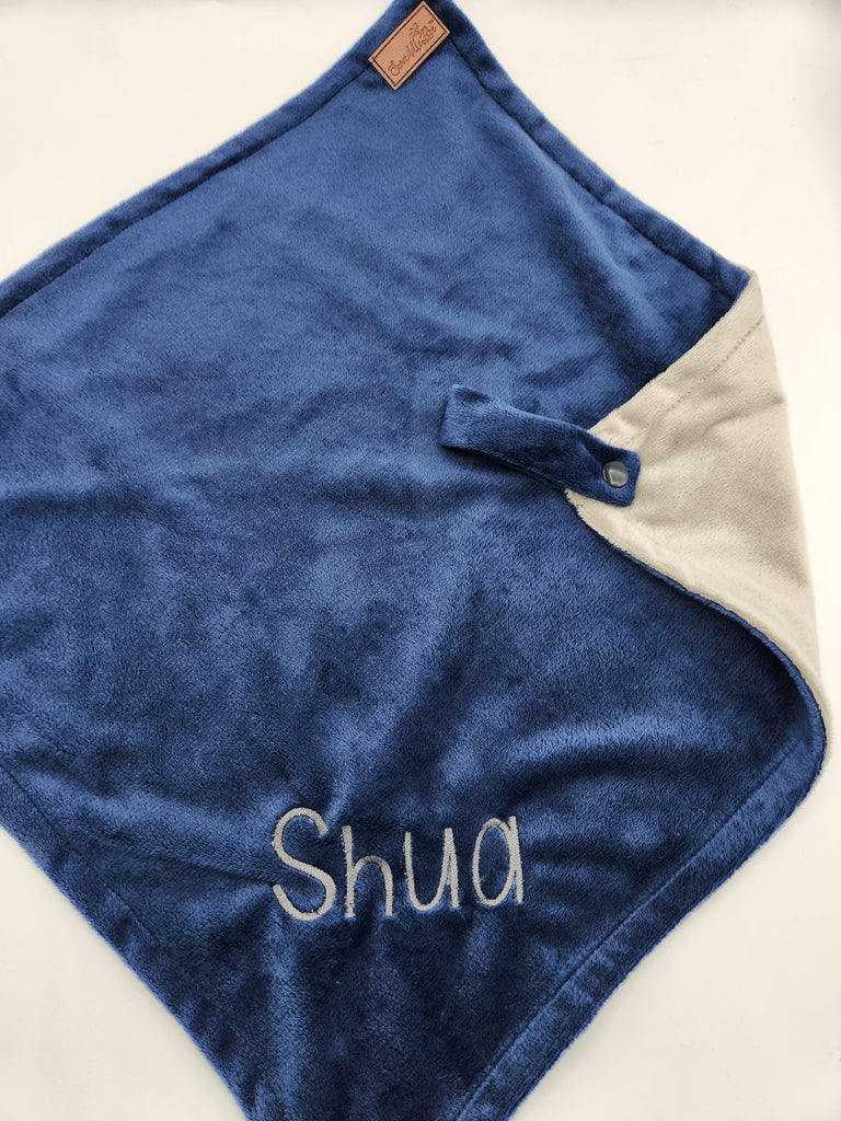 Heather Luxe Stonewash & Navy Solid Lovie With Teddy Bear