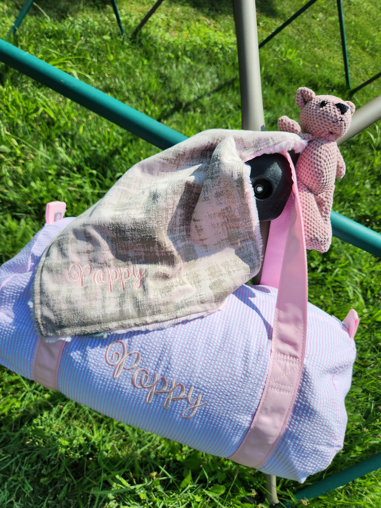 SOLD AS IS "Dani" in navy Marble Luxe Blue & Luxe Navy Lovie With Teddy Bear