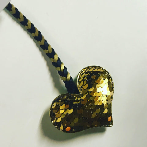 Black and Gold with Gold Flip Sequin Heart Paci Clip