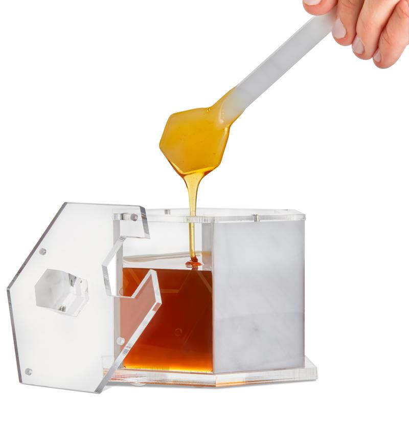 Lucite Square Honey Dish with White Marble Base