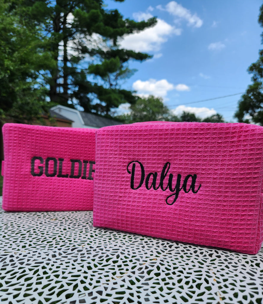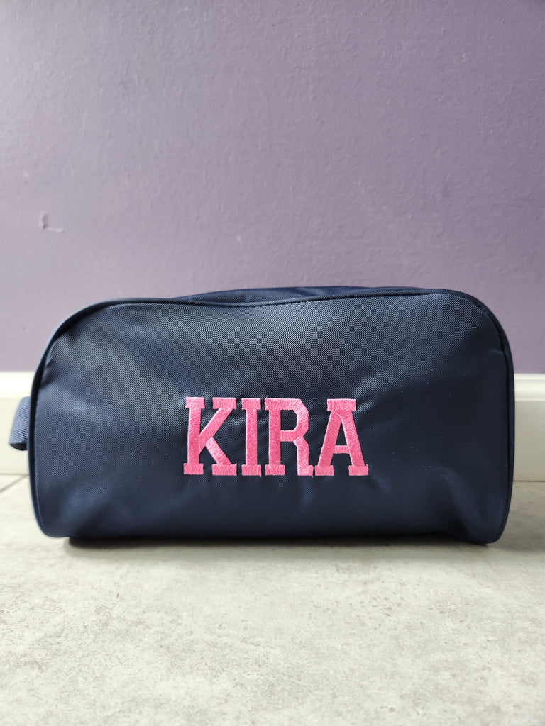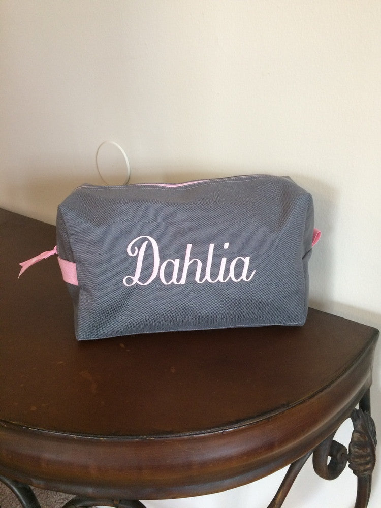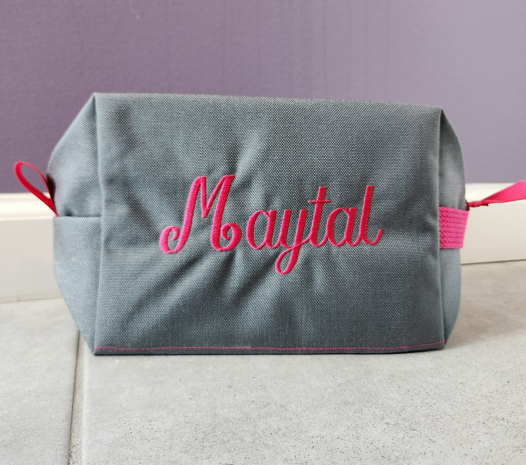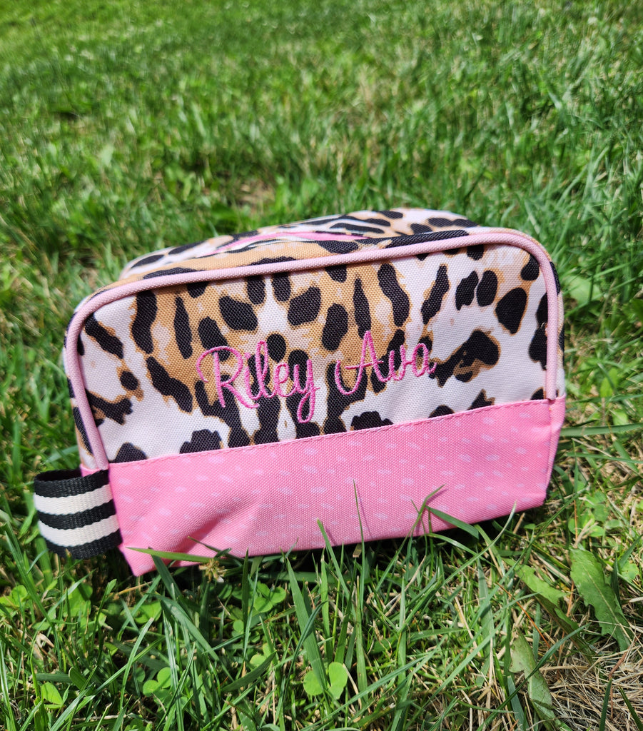 Girls Denim and Hot Pink Polka Dots Toiletry Bag