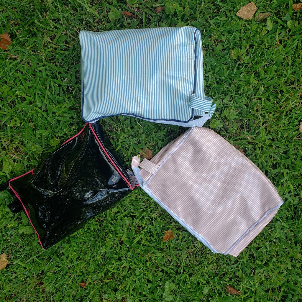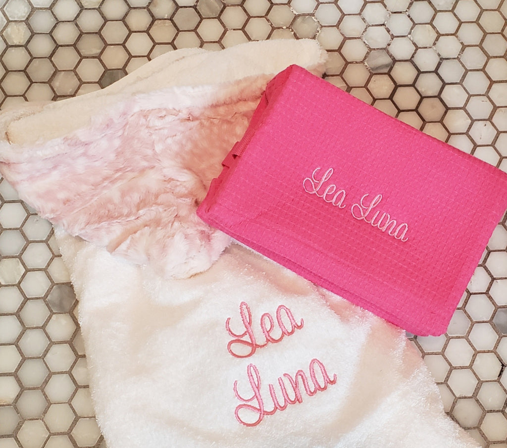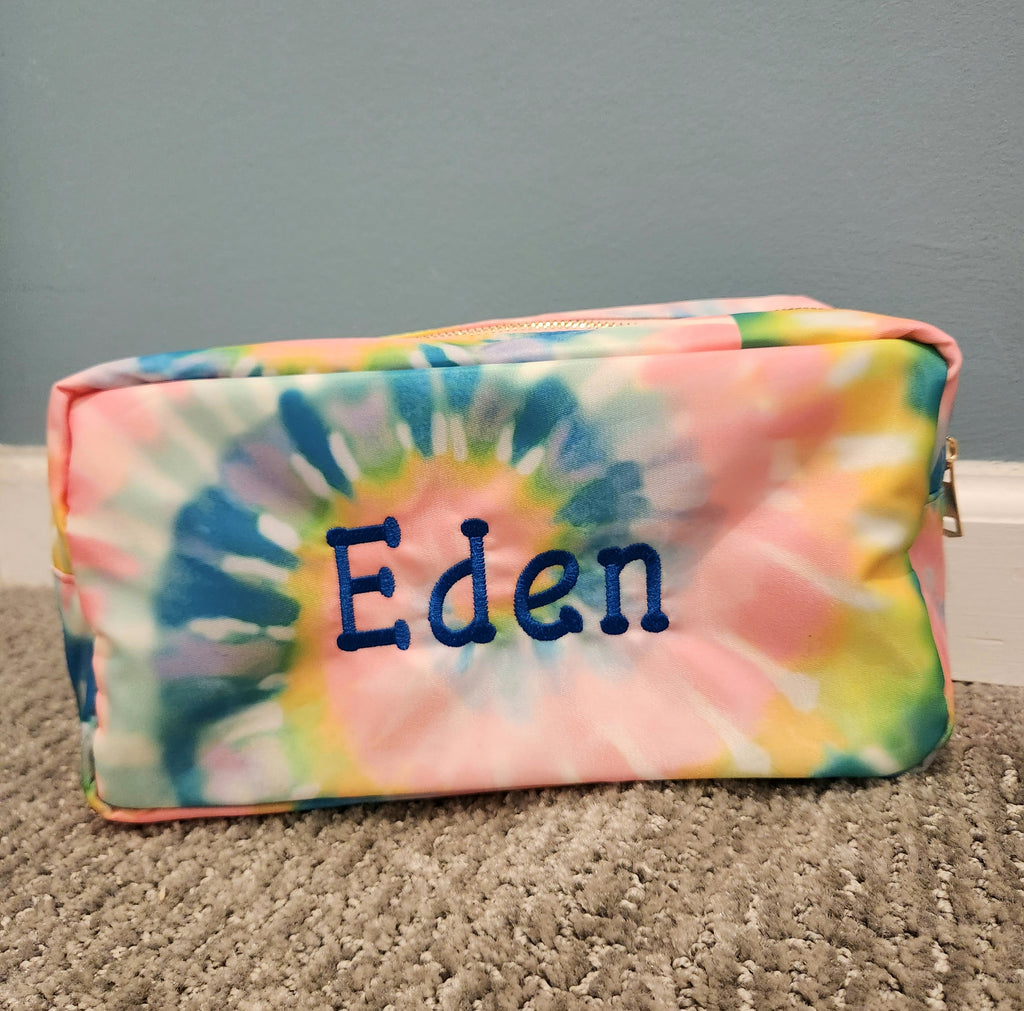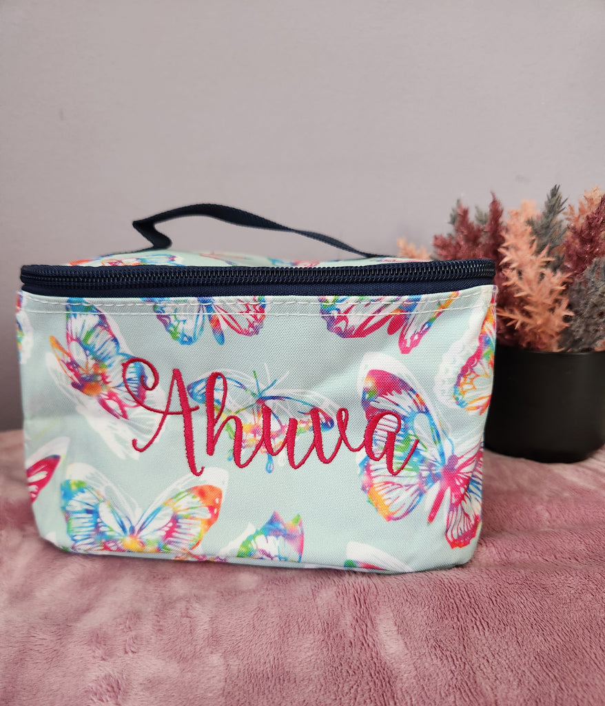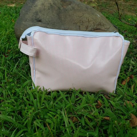 Girls Denim and Hot Pink Polka Dots Toiletry Bag