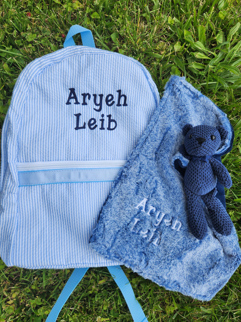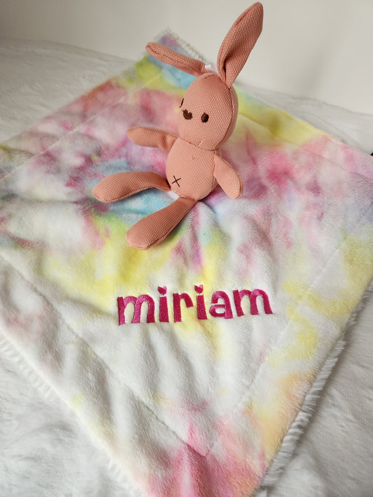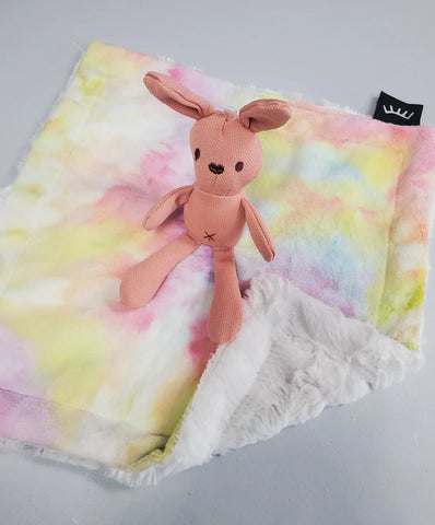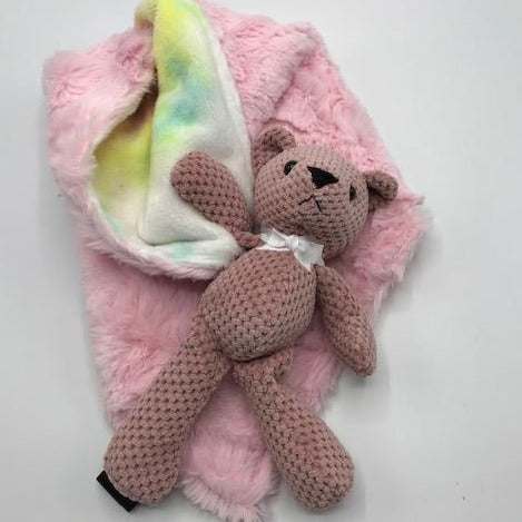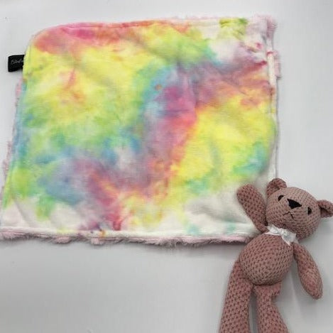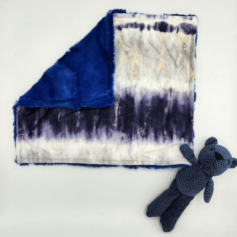 Tie Dye Stripe Blue and Blue Lovie With Teddy Bear