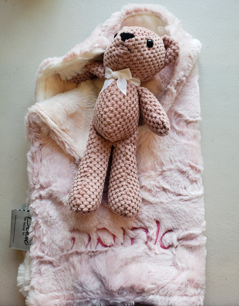 Ombre Blush Rosewood Lovie With Cream Teddy Bear