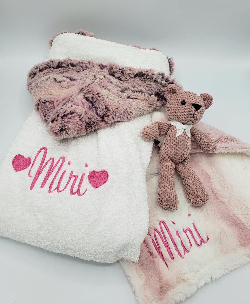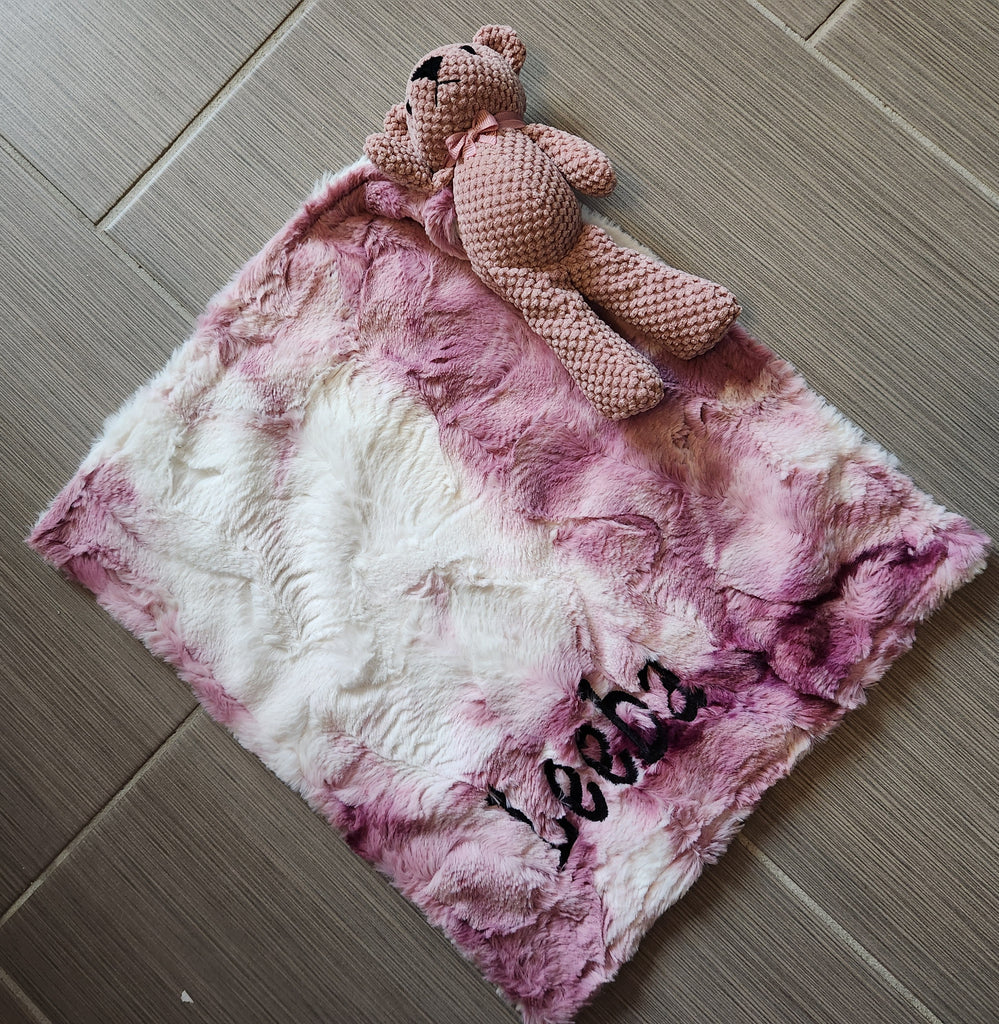Glitter Minky Merlot & Luxe Burgundy Lovie with Mauve Teddy Bear