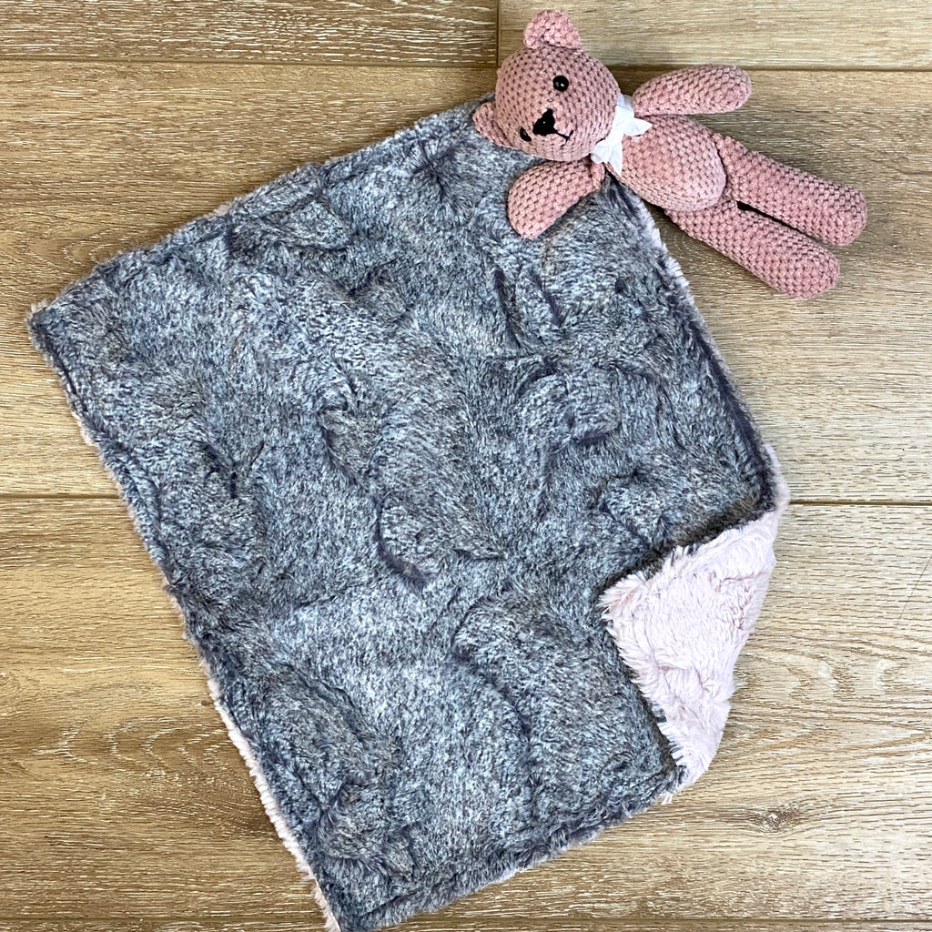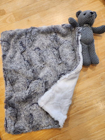 Marble Gray and Charcoal Lovie with Teddy Bear