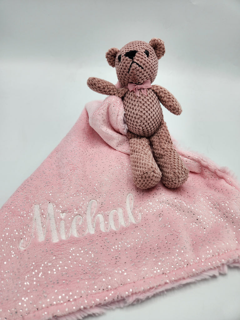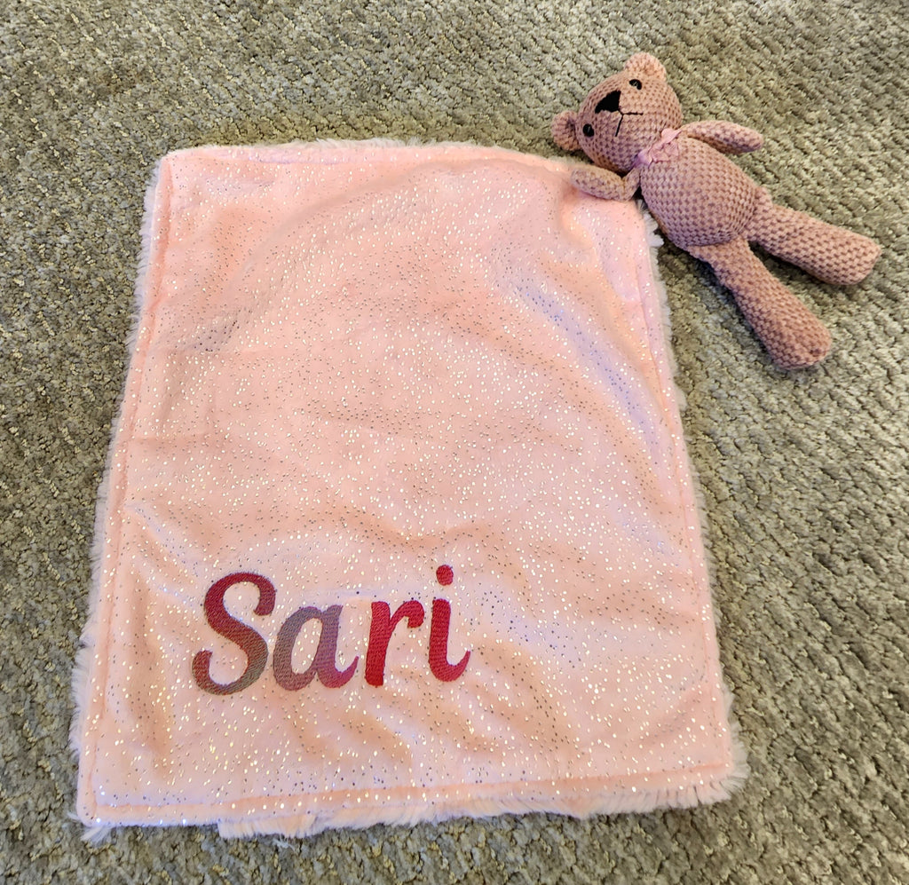SIlver Sparkle & Blue Luxe Lovie With Teddy Bear