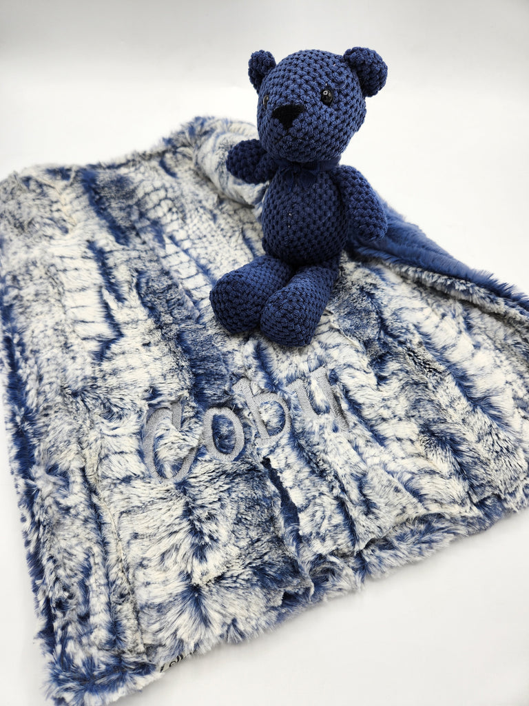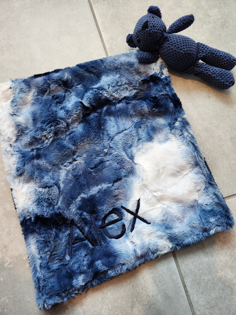 Marble Luxe Blue & Luxe Navy Lovie With Teddy Bear