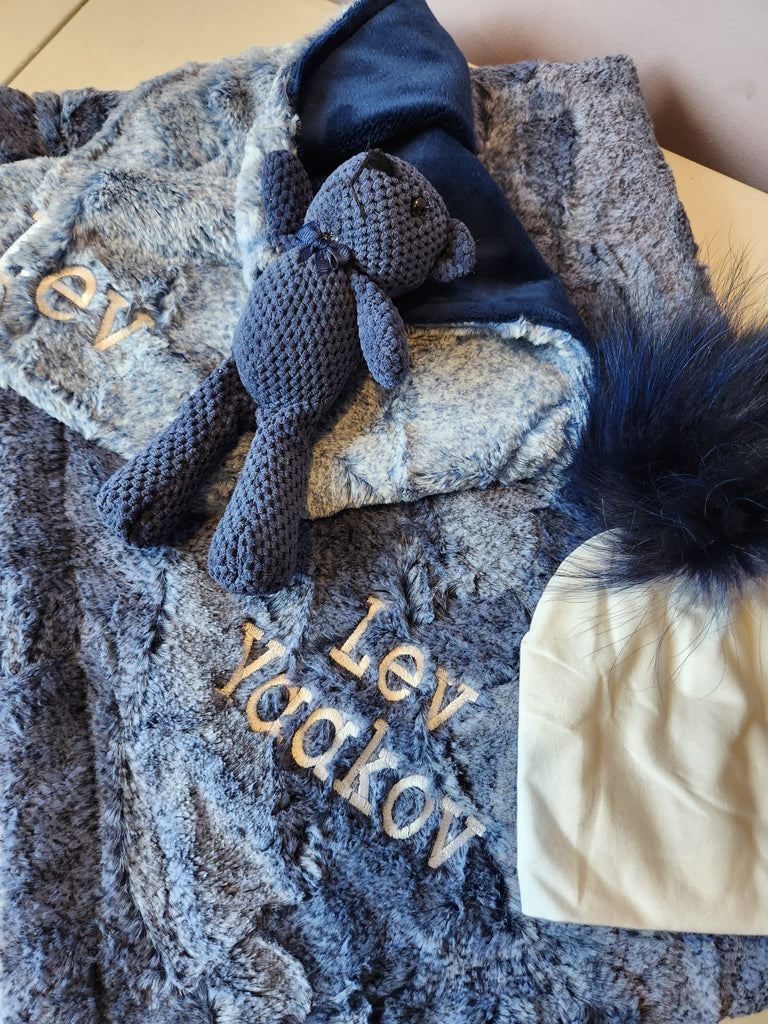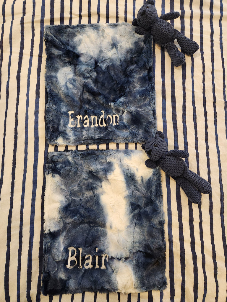 SOLD AS IS "Dani" in navy Marble Luxe Blue & Luxe Navy Lovie With Teddy Bear