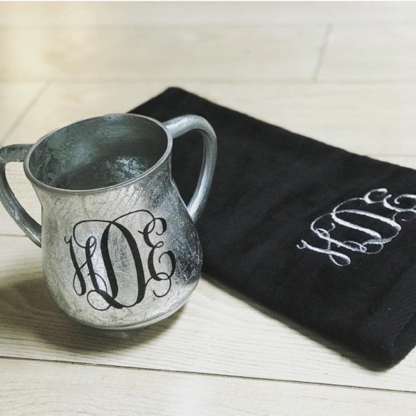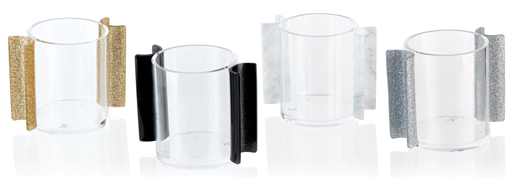 Black and Gold Marble with Clear Handles Lucite Washing Cup