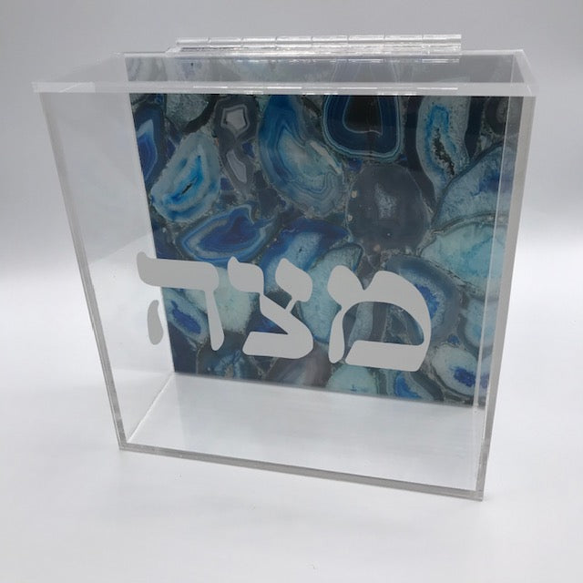 Blue Agate Square Matzah Box