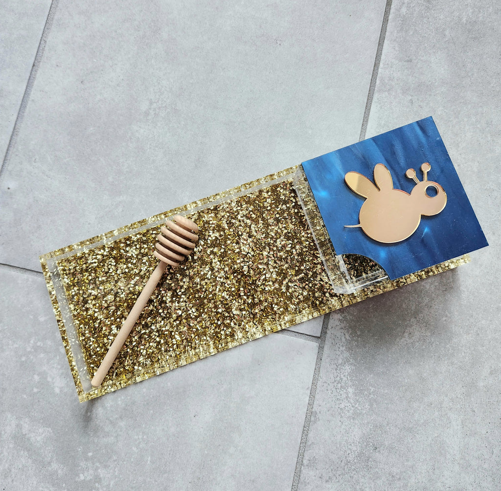 Chunky Gold Apple Tray with Navy and Gold Bee Honey Jar