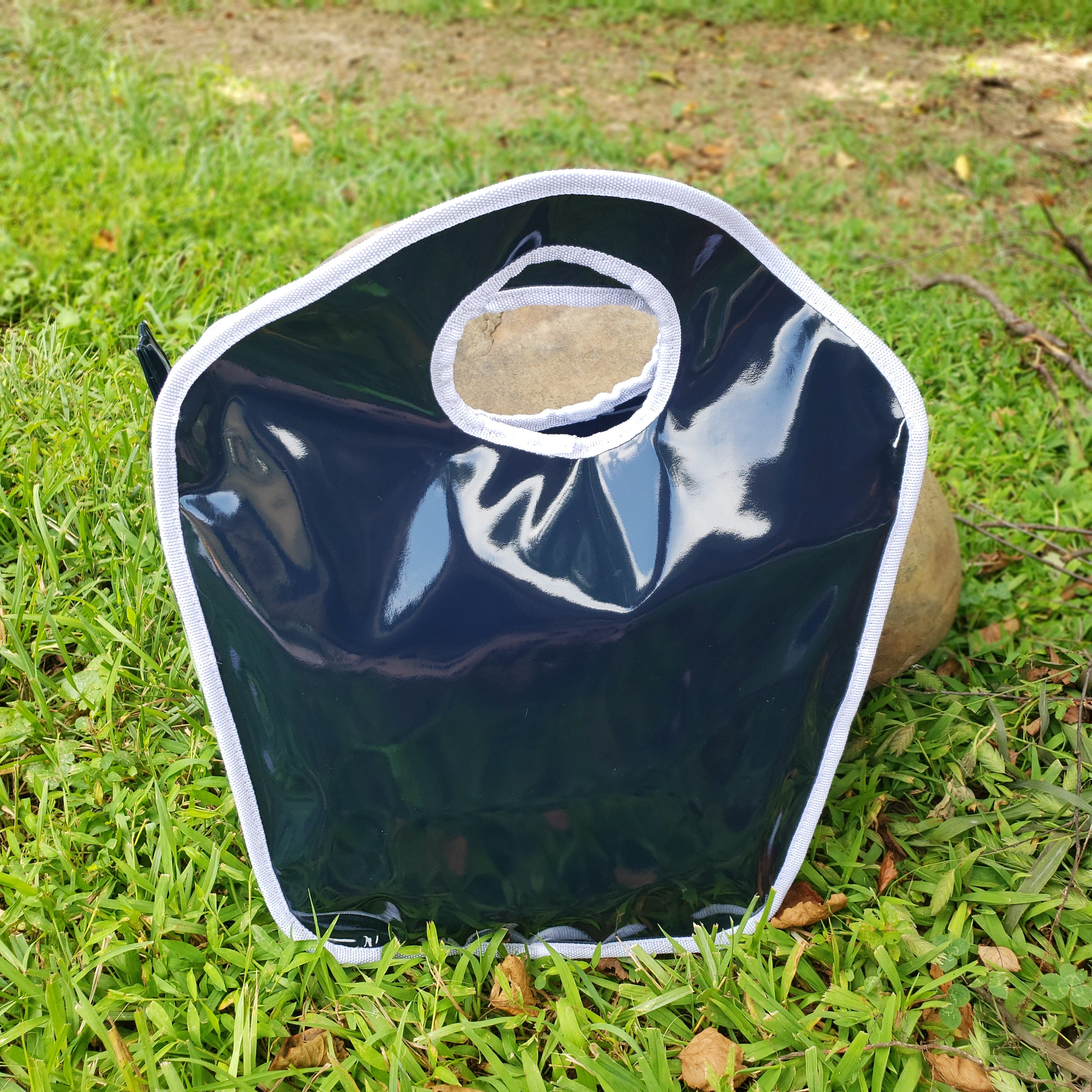 Navy and White Patent Keyhole Bag