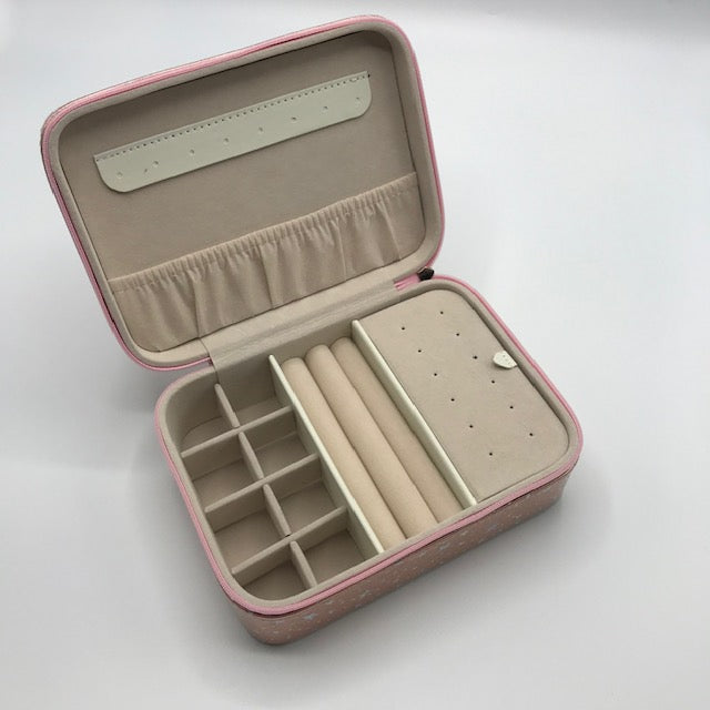 Organize and protect your jewelry on-the-go with this modern, stylish, zip-around case.