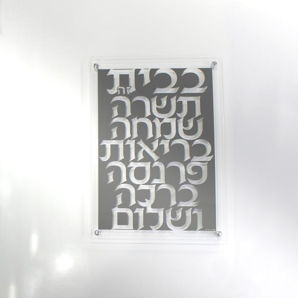 Beautifully designed Floating Lucite Birchat Habayit printed on thick lucite