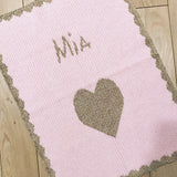 Metallic Single Heart & Scalloped Edge Stroller Knit Blanket
