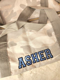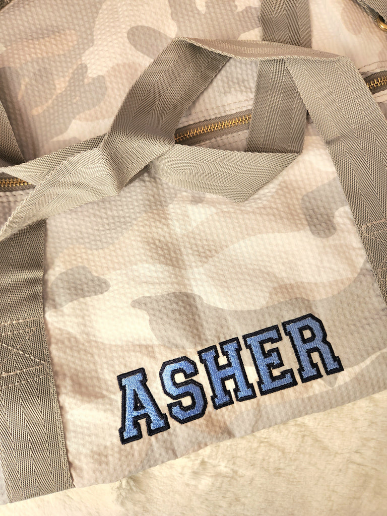 Bag measures 20.5 inches by 16 inches. Can be personalized in English, Hebrew or a Monogram.